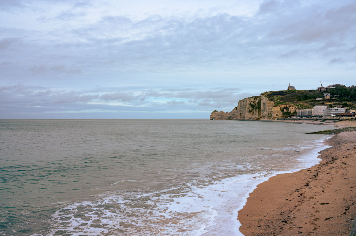 We worden wakker en zodra ik naar buiten stap, lijken de vrachtwagens als sneeuw voor de zon verdwenen. En het zonnetje – in tegenstelling tot Nederland – was ontzettend lekker. We doen een broodje en koffie waarna we doorrijden tot het stadje Êtretat, waar ik graag eerst wilde stoppen voor de krijtrotsen.